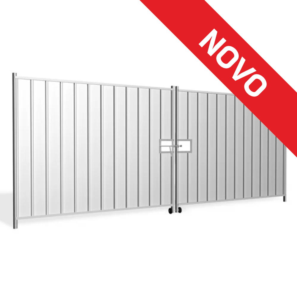 Dvokrilna polna gradbiščna vrata (2 x 2,3 m) so sestavljena iz dveh medsebojno dopolnjujočih se modulov, ki sta izdelana iz okvirja, zapolnjenega s trapezno pločevino. Komplet vključuje vodilna kolesa, tečaje in mehanizem za zapiranje.