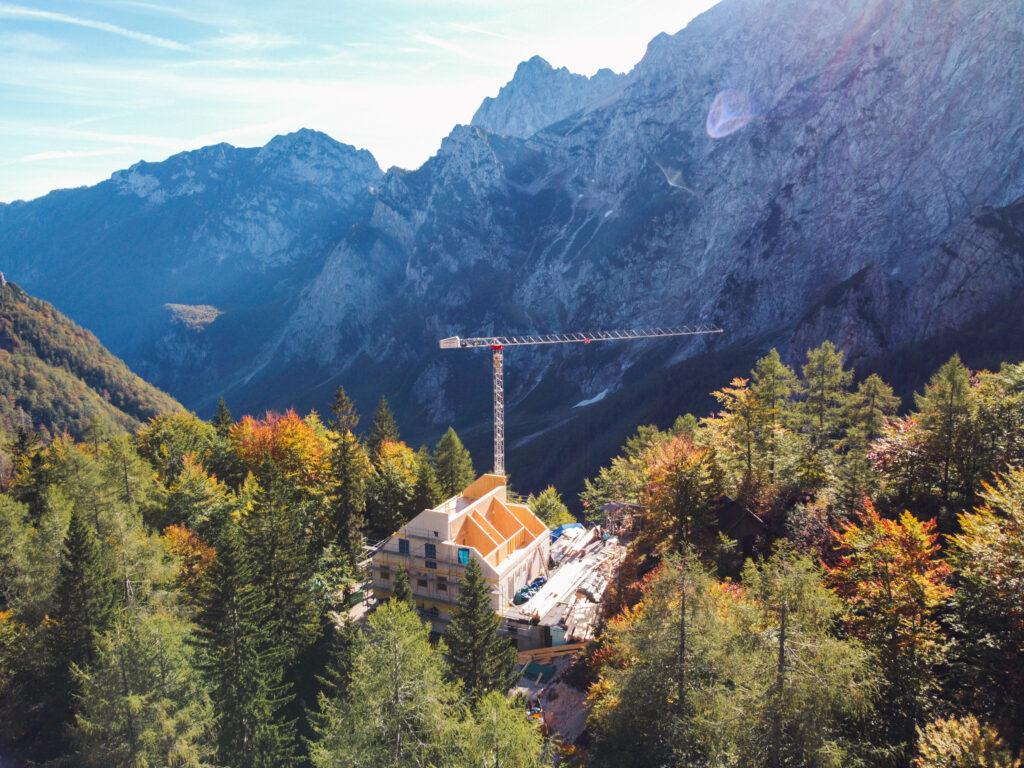 Pri gradnji novega Frischaufovega doma na Okrešlju, ki se nahaja na nadmorski višini 1.378 metrov, smo sodelovali s postavitvijo gradbenega žerjava na zahtevni lokaciji nad Logarsko dolino. Zaradi velikosti novega doma je bil žerjav nujen pripomoček pri montaži lesene konstrukcije, saj je izvajalcem omogočil varnejše in učinkovitejše delo.