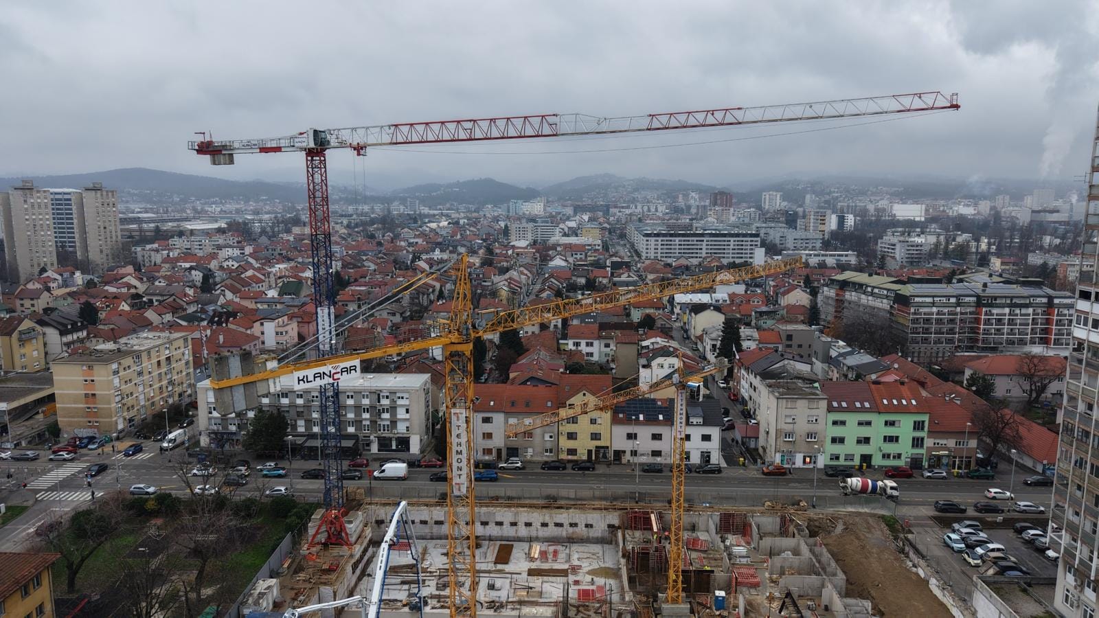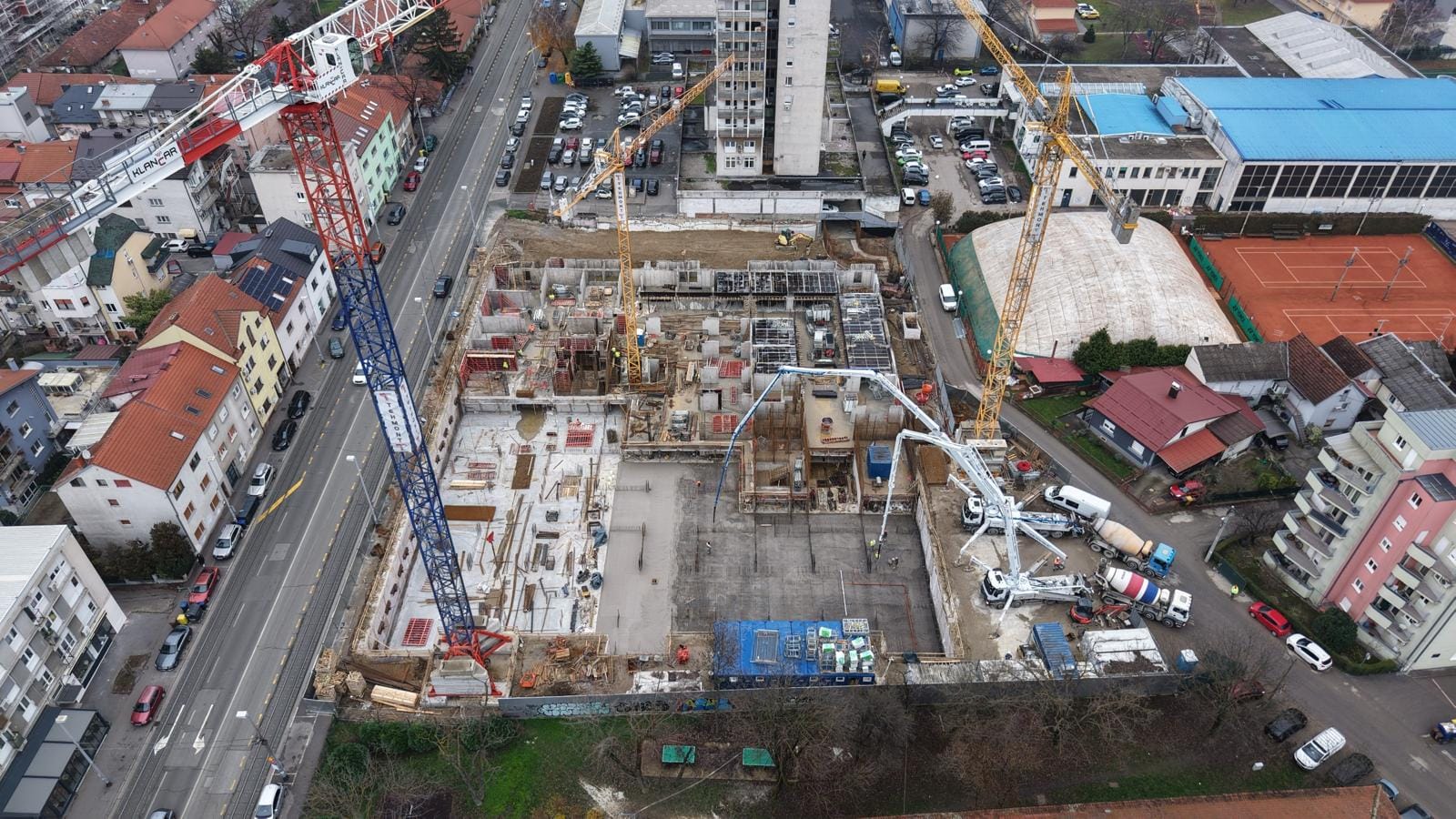 Gradbišče se nahaja v samem središču Zagreba – na lokaciji, kjer so prostor, dostop in logistika izjemno omejeni. Objekt je visok in tehnično zahteven, zato je bila postavitev stolpnih žerjavov velik izziv že v fazi načrtovanja.